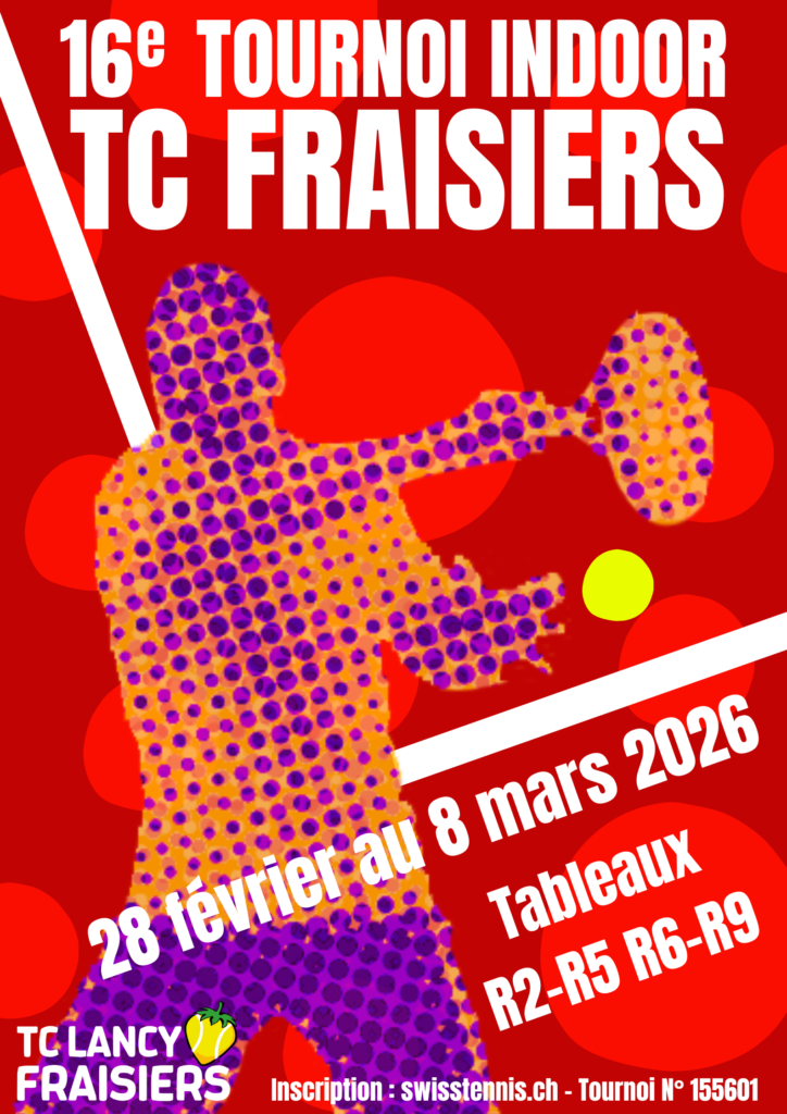 Le 16e tournoi indoor du TC Fraisiers aura lieu du samedi 28 février au dimanche 8 mars 2026.