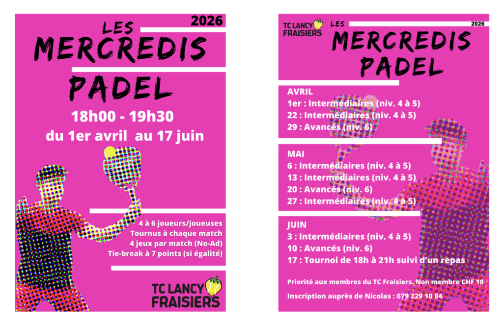 Le TC Fraisiers est ravi de vous annoncer l’ouverture de la 4e saison des Mercredis Padel.